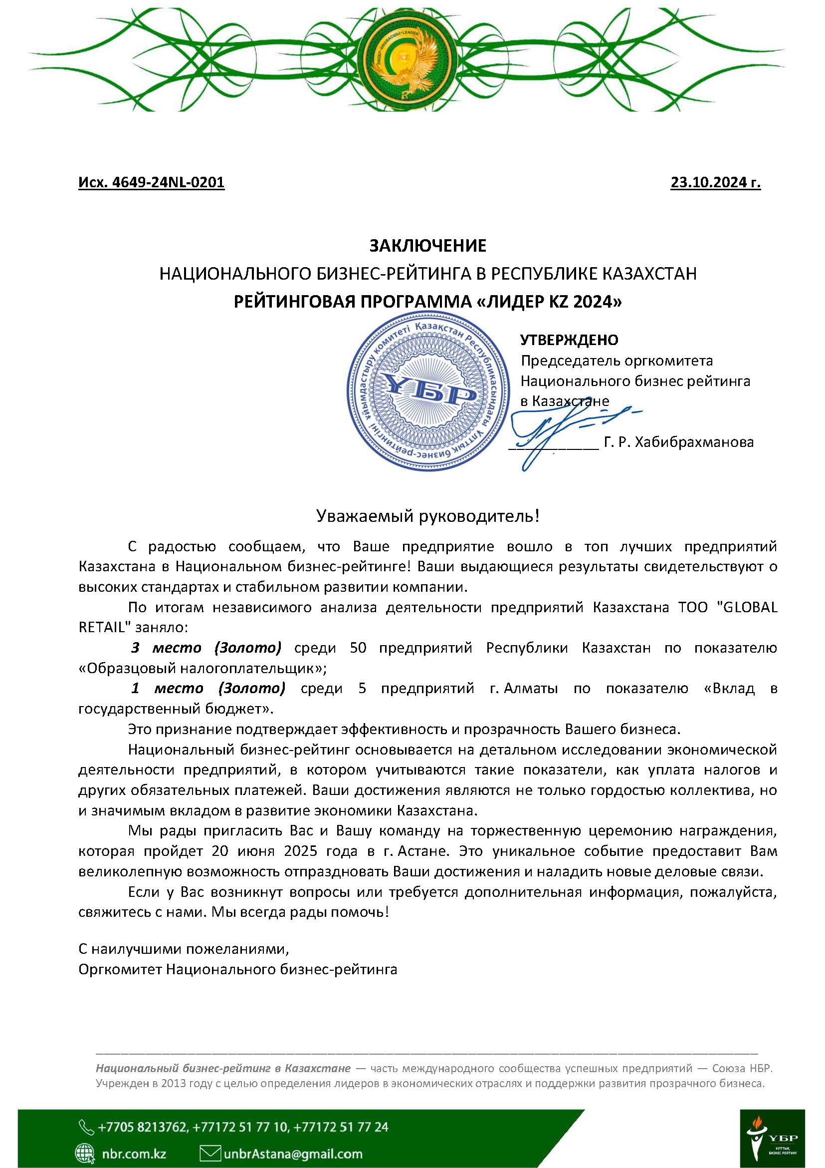 В 2020 году в экологически чистой зоне открылся уникальный в средней Азии завод Global Retail. Является казахстанским производителем сливочного масла, спреда, маргарина. Завод оснащен современным европейским оборудованием с полной автоматизацией всех процессов, что гарантирует стабильный вкус и высочайшее качество. Данное оборудование позволяет производить широкий ассортиментный ряд продукции. Производительная мощность до 2000 тонн продукции в месяц Численность сотрудников составляет более 100 человек, в том числе высококвалифицированные специалисты Европы и стран СНГ, обеспечивающие контроль качества и получение наивкуснейших продуктов в каждой категории.