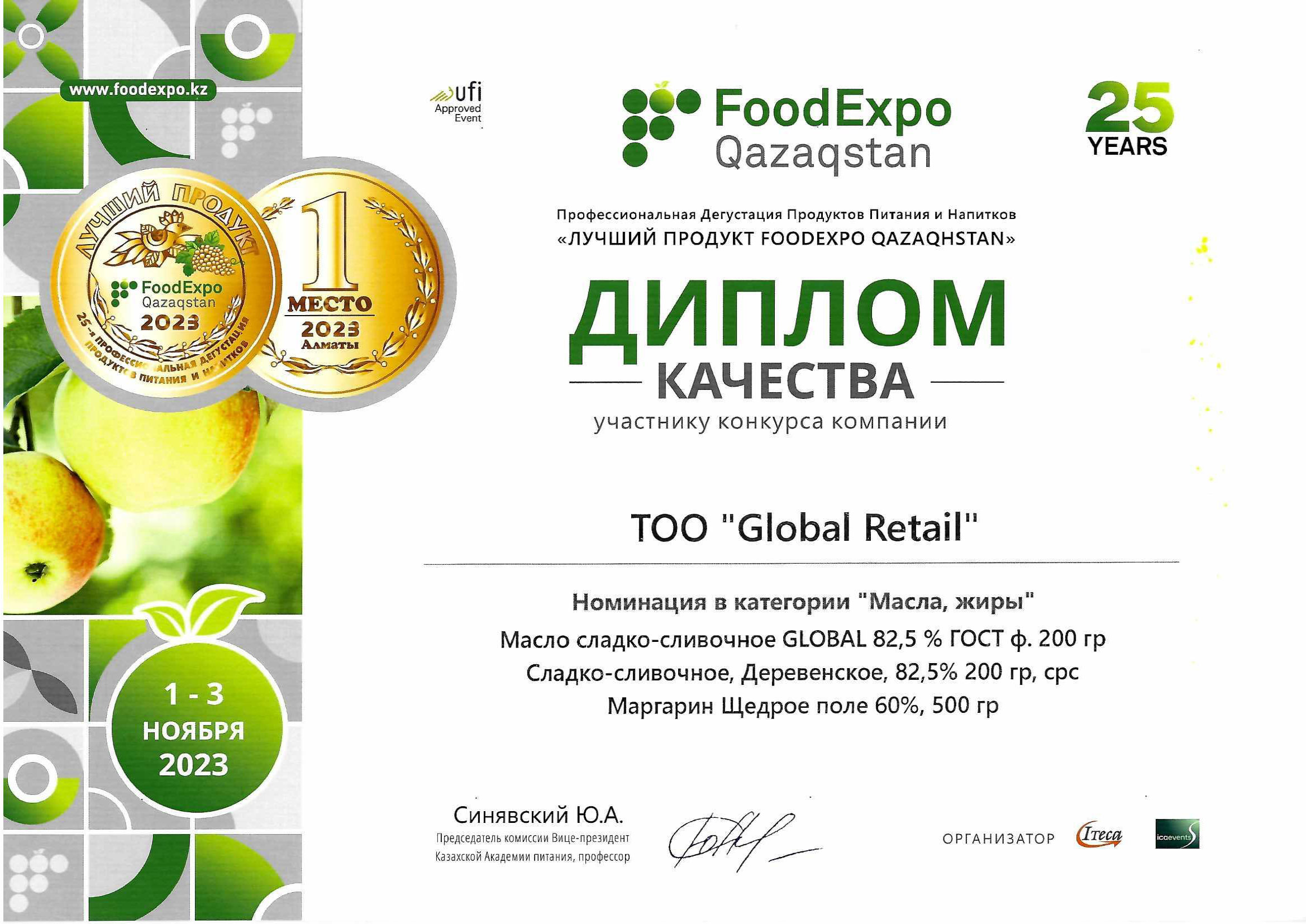 В 2020 году в экологически чистой зоне открылся уникальный в средней Азии завод Global Retail. Является казахстанским производителем сливочного масла, спреда, маргарина. Завод оснащен современным европейским оборудованием с полной автоматизацией всех процессов, что гарантирует стабильный вкус и высочайшее качество. Данное оборудование позволяет производить широкий ассортиментный ряд продукции. Производительная мощность до 2000 тонн продукции в месяц Численность сотрудников составляет более 100 человек, в том числе высококвалифицированные специалисты Европы и стран СНГ, обеспечивающие контроль качества и получение наивкуснейших продуктов в каждой категории.